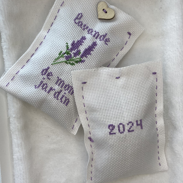 Nos pochons de lavandes sont brodé à la mains, et la lavande est récoltée de notre jardin.